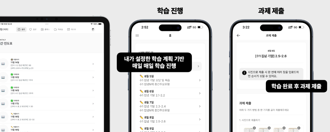 의지력이 아니라 구조로 순공시간을 확보합니다. 시간과 장소는 자유이지만, 분량 완수는 매일 확인됩니다.